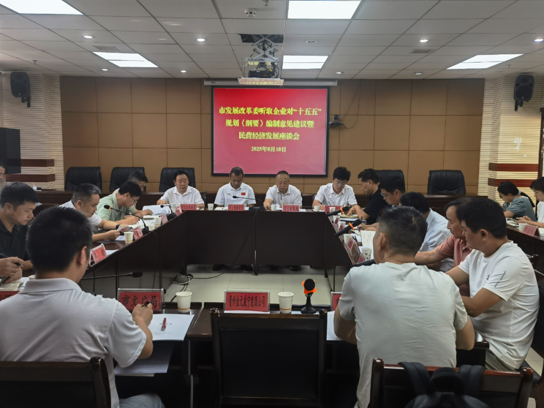 8月18日,市发展改革委党组书记、主任王乔顺主持召开座谈会,听取有关行业协会、市属国有企业、民营企业对我市“十五五”规划编制及促进民营经济发展工作的意见建议。