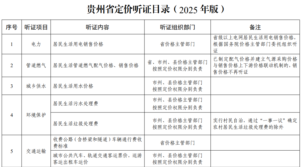 省发展改革委关于印发《贵州省定价听证目录(2025年版)》的通知