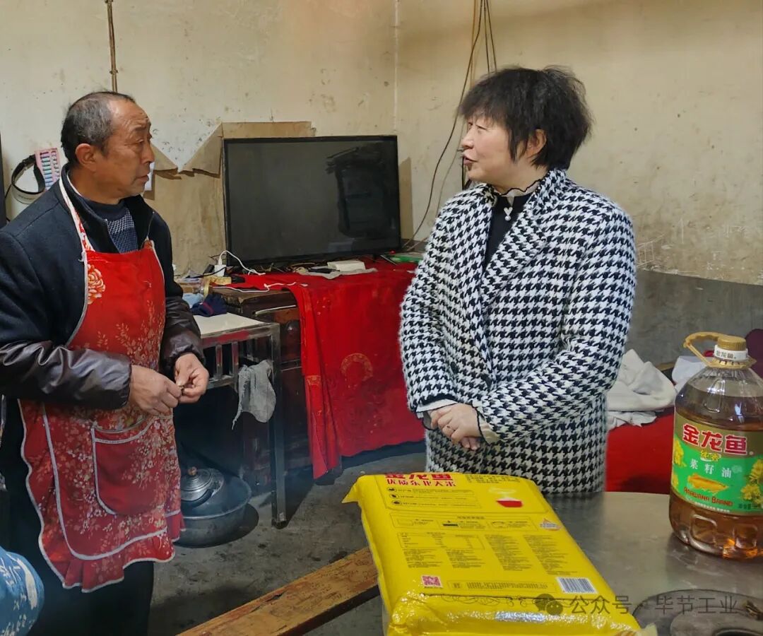 为持续推进巩固拓展脱贫攻坚成果同乡村振兴有效衔接有关工作,切实开展2025年春节走访慰问活动,2025年1月20日,受局党组书记、局长刘剑锋委托,市工业和信息化局党组成员、副局长龙盛君携市工业能源投资建设有限公司、中国移动毕节分公司、中国电信毕节分公司一行,到七星关区团结乡走访慰问困难党员、退伍军人及困难群众代表,向他们送去大米、食用油等慰问品,并致以新春祝福。局党组成员、市民营经济发展中心主任吴江涛、市工业能源投资建设有限公司副总经理曾科、中国电信毕节分公司副总经理陈伟、中国移动七星关区分公司总经理谌振业等参加走访慰问活动。座谈会现场