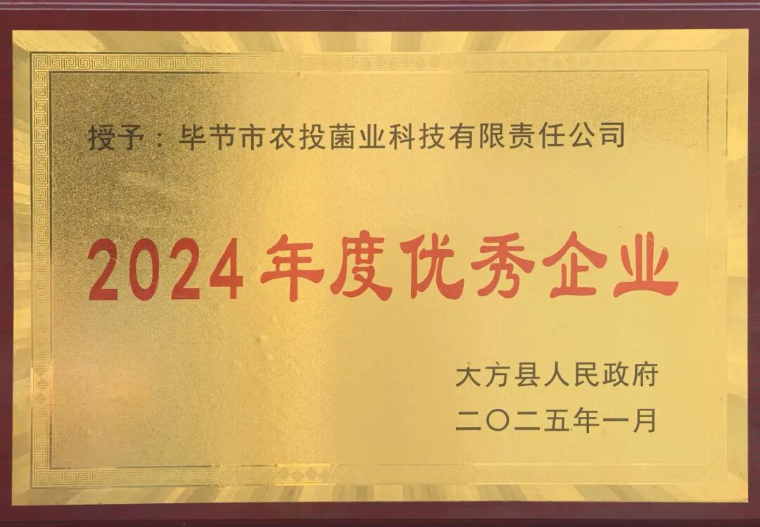 近日,毕节市农投菌业科技有限责任公司被大方县人民政府评为2024年度优秀企业,并予以通报表扬。