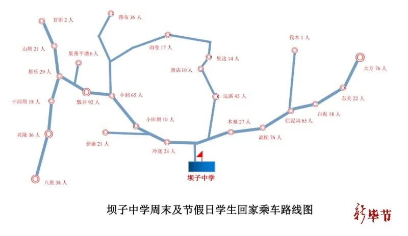 “在定制班车试行之前,周末和节假日学生的出行可是个老大难!”该校副校长杨思明看着仅仅20分钟左右便已空荡荡的校园,感触颇深。坝子中学生源组成复杂,达溪镇本地的学生占比仅有三分之一左右,每逢周末及节假日放学,校外道路早就堵起了长龙。