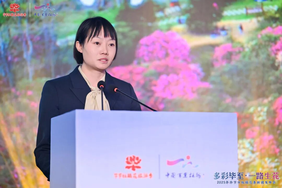 百里杜鹃管理区党工委副书记、管委会主任彭婷重点介绍了“三新体验”:新场景、新产品、新玩法。并发布了“一多”“四免”优惠政策:百里杜鹃一票5日游+观光车票3日通乘;持票游客可享景城公交免费、方家坪/彝山花谷景区免票,酒店住客享方家坪免票优惠。