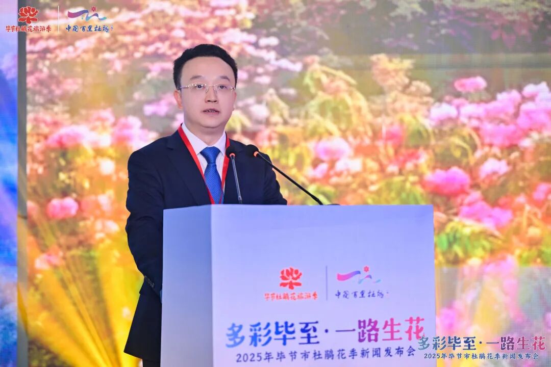 刘元刚致辞并作旅游推介,他强调,百里杜鹃正以“建设世界级旅游目的地”为目标,聚焦生态优势,全面提升旅游服务品质与产品创新,为游客呈现一场浪漫与诗意交织的春日盛宴。