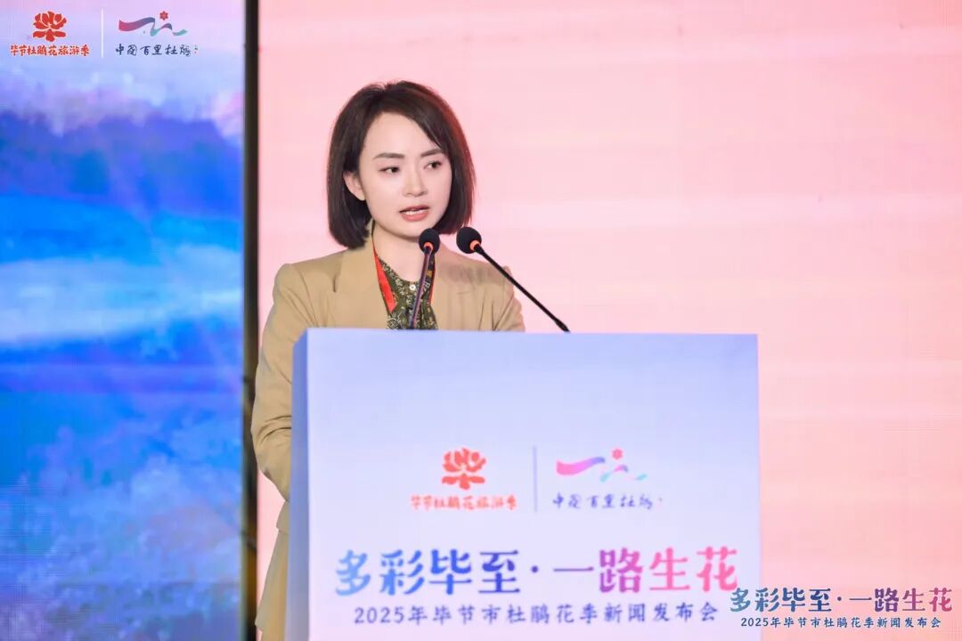 发布会上,饶萍局长详细推介了毕节市的旅游资源,并介绍了旅行社奖补政策、小车小团产品及春季旅游精品线路。在创新产品与服务方面,毕节市推出了“小车小团”服务,提供5-38座定制车型,覆盖高铁站、机场接驳,实现“一站式”便捷出行;同时,还推出了百里杜鹃非遗集市、“毕节有礼”文创等新产品。在优惠政策方面,毕节市推出了串联市内10余个重点景区的20套“景景联动”优惠联票,游客可在美团、携程、抖音、景区自营官方账号等平台订购;此外,在执行贵州省优惠政策的基础上,今年毕节市继续推出鼓励旅行社“引客入毕”的奖励大礼包,将百里杜鹃花季纳入奖励时段,对符合条件的旅行社给予奖励。