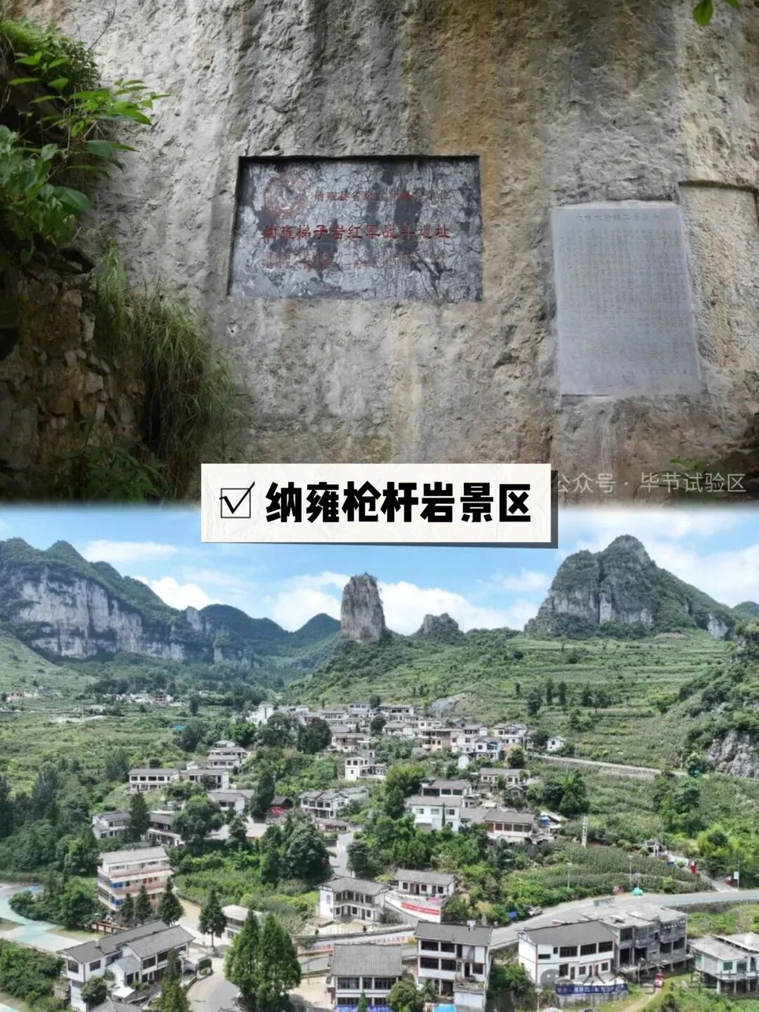 走进村子,一座拔地而起的岩石引人注意,这便是枪杆岩。它的对面有一座石山叫“手扒岩”,就如名字所说,当年红军在战斗后由此石山徒手攀岩撤退而下。这两座险峻的石峰见证了红军的艰苦岁月。枪杆岩村因这座石峰得名,当年红军在此休整与当地百姓建立了深厚的友谊,村里至今还保留着红军屋、红军井等景点。景区也在依托红色文化场景的基础上建立扩展配套红色展览、休闲设施。