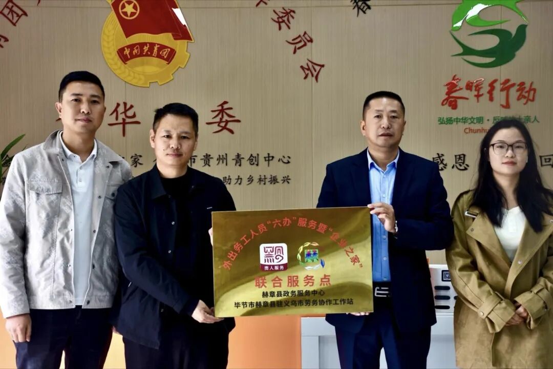 近日,贵州省毕节市赫章县政务服务中心远赴浙江省金华市,与赫章县驻义乌市劳务协作工作站联合举行“外出务工人员‘六办’服务暨‘企业之家’联合服务点”挂牌仪式,旨在将“异地服务”从零散举措整合为系统化网络,把“六六稳岗”政策真正送到在浙务工的赫章籍老乡身边,探索跨区域务工人员服务保障的新模式。