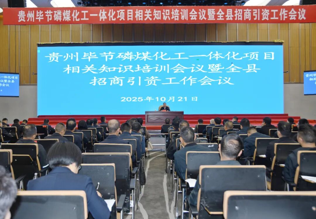 10月21日,县委书记杨志伟在县委党校报告厅主持召开贵州毕节磷煤化工一体化项目相关知识培训会议暨全县招商引资工作会议。他强调,要深入学习贯彻习近平总书记在贵州考察时的重要讲话精神,按照省“三个大抓”部署要求,建好用好“一图三清单”,聚焦“四看、四谈、四落”开展招商引资,狠抓项目“谋、投、建、管、用”全生命周期服务管理,为推动全县经济社会高质量发展作出新贡献。