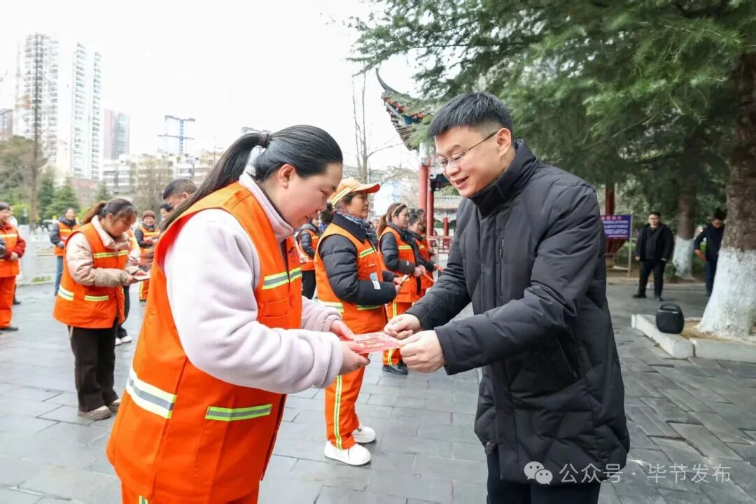 姚轶来到市应急管理局应急指挥中心,强调要做好应急准备,加强值班值守,全力保障春节期间平安稳定。在市人民公园,姚轶看望并慰问环卫工人代表,对他们的辛勤付出表示感谢。在市政务服务中心,姚轶详细了解12345政务服务便民热线运行情况,强调要强化服务意识,着力解决群众反映强烈问题。姚轶还来到毕节供电局、毕节高铁站,叮嘱大家要坚守岗位、履职尽责,用心用情做好服务。