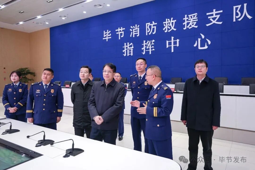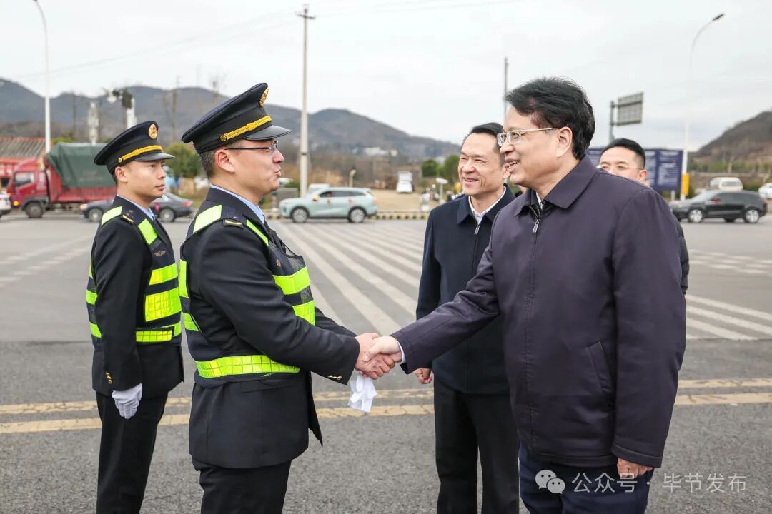 郭锡文首先来到松林水厂,认真听取设备运行、应急保障等情况介绍,强调要加强供水调度,做好管网巡检与隐患排查,确保春节期间市民用水安全稳定。在市消防救援支队,郭锡文叮嘱大家要时刻绷紧安全这根弦,继续保持优良传统和战斗作风,加强信息预警研判,全力筑牢春节消防安全防线。在毕节收费站特巡警、路政、交警执勤点,郭锡文与执勤人员亲切握手,希望大家忠诚履职担当,切实做好路面巡逻、车辆疏导、维稳处突等工作,守护好万家平安幸福。