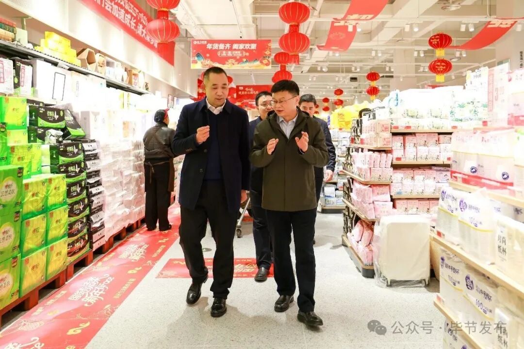 春节将至,2月13日至14日,省委常委、市委书记郭锡文,市委副书记、市长姚轶分别深入七星关区新春市集、大型商超及农贸市场等地,实地检查春节期间民生保障、市场供应、安全稳定工作,向节日期间坚守岗位的广大劳动者表示感谢,祝全市人民新春快乐、马年大吉、万事如意。市领导张建军、李勰参加。