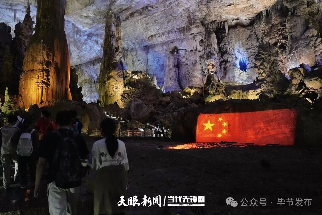 今年双节期间,日均接待游客近2万人次的织金洞景区秩序井然。智慧化灯光秀系统通过传感器实时监测洞内游客密度和位置变化,自动调节各区域灯光强度与色彩,在客流高峰时段自动增强光线引导分流,既提升游览安全性又增强体验舒适度;佩戴笑脸徽章的志愿者服务队定时开展巡逻,为游客提供旅游咨询、合影留念、应急救助等贴心服务。