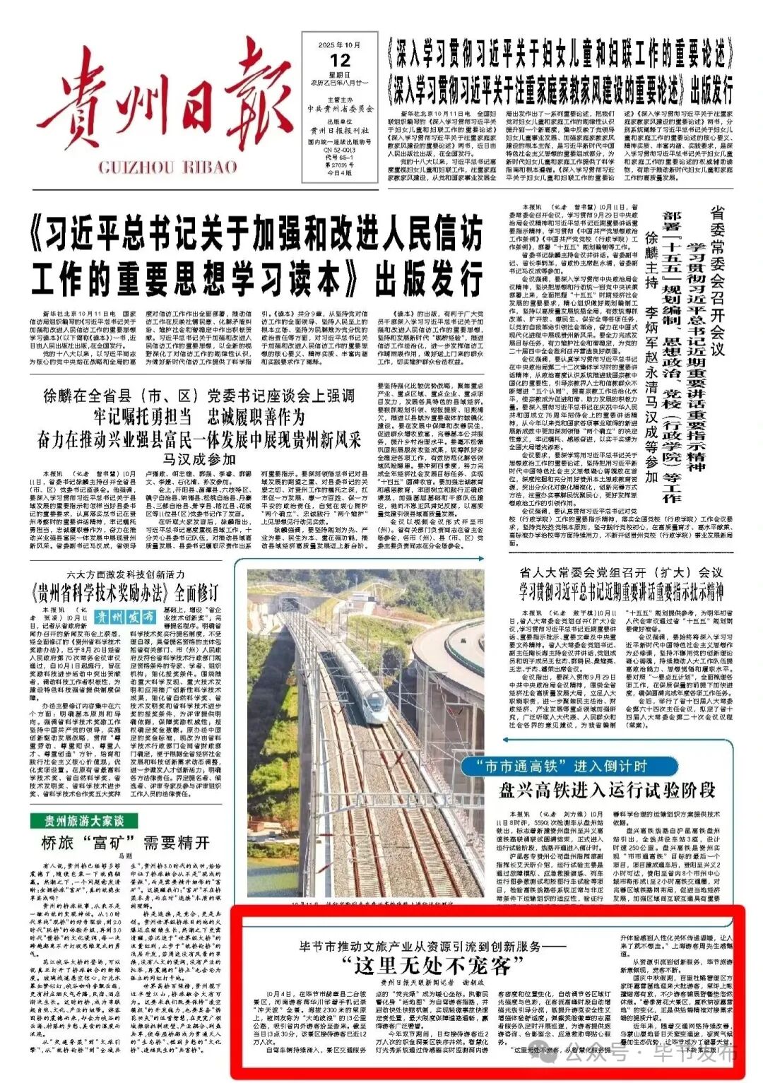 《贵州日报》头版倒头条